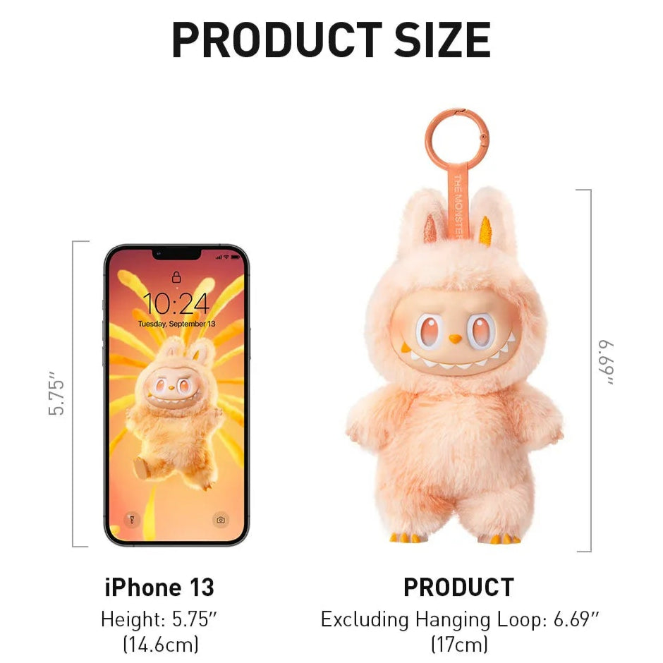 Crafted from soft vinyl with fluffy textures and detailed features, Labubu showcases its iconic mischievous smile and expressive pose, perfect for brightening up your keys, bags, workspace, or display shelf. Each plush keychain includes a durable loop for easy and secure attachment.